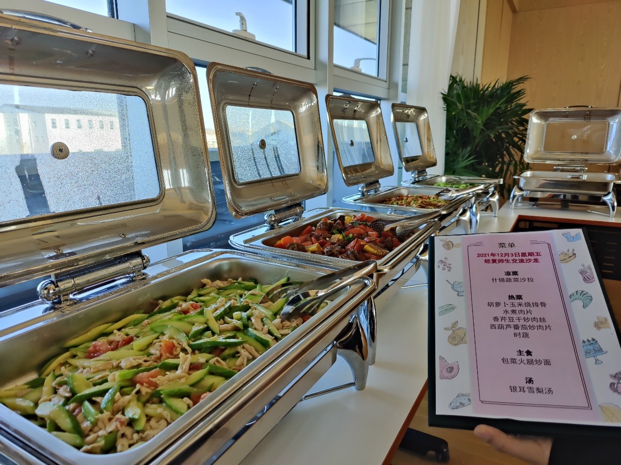 中午11:30左右,本科教学中心的三位老师早早到达会场开始最后的布置和安排。宽敞整洁的教室、热气腾腾的自助午餐还有冬日明媚的阳光都在期待着各位老师和同学的到来。