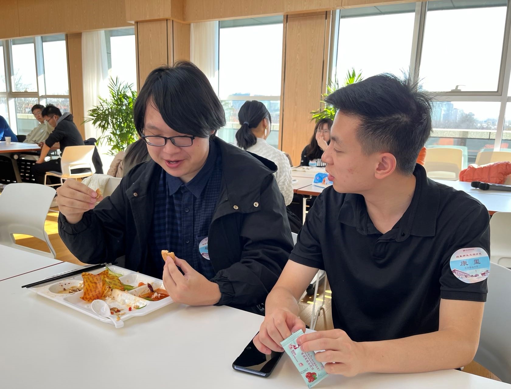 11:50许,参会的老师和同学们陆续到达会场开始签到、领取自己的胸贴,然后依次去自助用餐。取完餐后同学们三五成群开始入座,有的同学和自己心怡的老师一起用餐、有的同学则找到新认识的朋友一起畅聊。大家其乐融融、交流会从这一刻拉开了序幕
