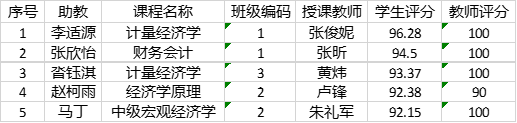 2022年秋季学期本科优秀助教及特别贡献助教公示