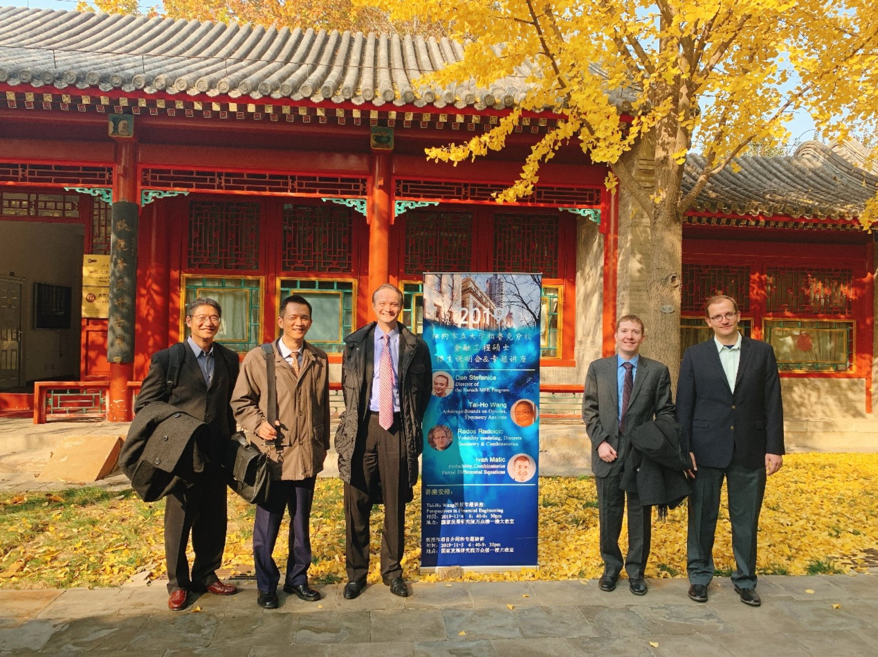 2019年11月4日——11月5日,在同学和老师们热闹的探讨声中,纽约市立大学柏鲁克分校金融工程硕士招生说明会及专题讲座在大陆成人直播 万众楼顺利举行。Baruch MFE项目主任Dan Stefanica与Tai-Ho Wang(王太和)、Rados Radoicic、Ivan Matic三位教授在美好的秋日来到国发院,在参观过朗润园美景并与姚洋院长进行了深入的交流后。更为国发院的同学们带来了精彩独到的专题讲座,详细介绍了Baruch MFE项目的相关信息,并与在场同学们进行了一对一的零距离交流。