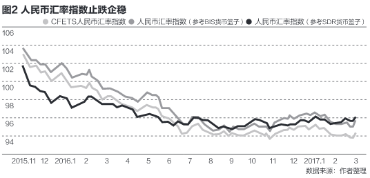 图2支持上面这个结论。自2016年7月以来,衡量人民币对一篮子货币估值的人民币汇率指数(CFETS指数)停止下跌,进入平稳运行。不管是用CFETS自己的货币篮子,还是用国际清算银行(BIS)或国际基金组织特别提款权(SDR)的货币篮子,人民币汇率都已经进入稳态波动的状态,不受美元汇率的控制。2016年7月之前人民币汇率的下跌,是因为2015年“8·11”汇改以来,人民币对美元迅速贬值,从6.1左右贬值到6.65左右。这一贬值,是对2014年年中以来美元大幅升值、人民币盯住美元而被动升值的调整。