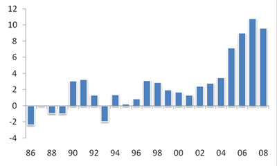 Chart 1. China’s Current Account Balances, 1986-2008 (% GDP)