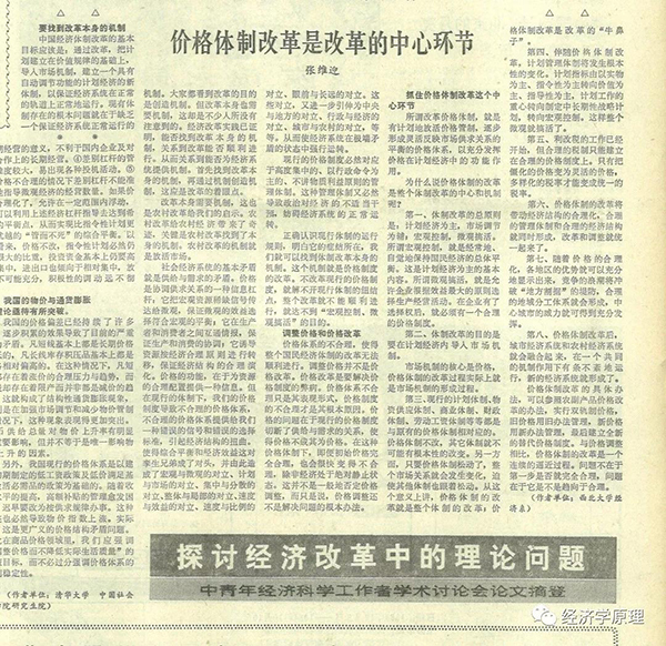 编者按:1984年4月21日,张维迎写成了 《以价格体制改革为中心,带动整个经济体制的改革》一文。在这篇论文中,作者首先论证,价格改革是经济体制改革的中心环节,价格改革的核心是改变价格形成机制而不是调整价格;然后提出并比较系统地论证了如何通过“双轨制”逐步放开价格管制、走向市场定价的思路。全文最初刊印于国务院技术经济研究中心能源组 “内部资料”《专家建议》(三)(1984年6月出),随后入选“中青年经济改革理论研讨会”(俗称“莫干山会议”)会议论文。莫干山会议后,《经济日报》曾选择部分会议论文发表,这篇论文的节选以《价格体制改革是改革的中心环节》的标题刊登于《经济日报》1984年9月29日第3版。在这篇论文写成35周年之际,与读者分享。