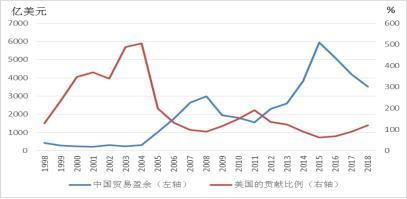 财富在向中国转移。美国有大量的贸易赤字,中国有较高的贸易盈余。赤字国的财富向盈余国转移。图1是中国货物贸易盈余总量和美国在其中的贡献率。看左轴,中国的贸易盈余在2015年达到顶峰,然后降下来了,但到2018年仍然有3500多亿美元。这其中美国贡献多少呢?美国长期贡献超过100%,最高峰超过了500%,这意味着中国对世界其他国家都是有赤字的,所有的贸易盈余来自美国。最近这些年,美国占的比例略有下降,2015年之后又上升,回到100%以上。因此,可以说中国贸易盈余来自一个国家。贸易赤字意味着必须借款,向盈余国借。美国有美元优势, 我们叫美元霸权,他可以印钞票。短期来说对我们不利,稀释我们的美元资产。黄海洲和他的合作者Patrick Bolton提出一个货币的股权理论,认为货币就像股权似的,企业增发股票,原来股东的股份就会被稀释掉。但是,发钞票就意味着向股东们发股票,未来付息还本的代价就会提高,长期而言,就是美国财富在向中国转移,美国的子孙后代欠中国越来越多的钱,除非有一天美国人赖帐,说“game over”,但这个很困难。我想,靠印越来越多的钞票,不停的稀释美国债务,我觉得长期来说这是困难的。所以从这点来说,我觉得以前关于贸易不平衡的说法是不对的;我觉得特朗普是对的。当一个国家有贸易赤字的时候,你就在消耗你的国力。就像一个家庭,一家人天天在借贷生活,只着子孙后代给你还,你可不是就在消耗家力嘛?作为一个国家,就是在消耗国力。所以一般的经济学家说贸易赤字没有问题,我觉得是不对的。