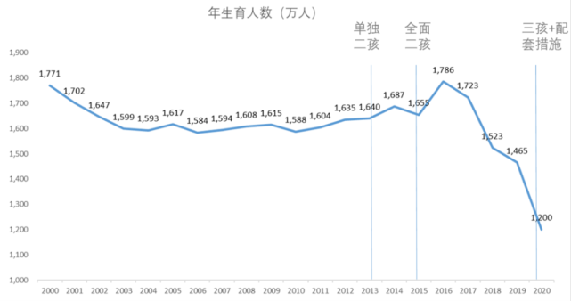图1 中国生育政策与年生育人数(2000年~2020年)