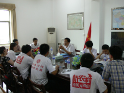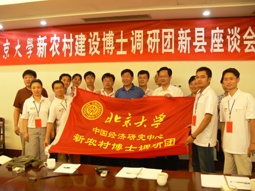 7月25日凌晨,北京大学新农村博士调研团顺利抵达河南省新县,受到了当地政府的热情接待。当天上午,调研团的同学们和当地政府官员举行了座谈会,新县县长级干部匡胜良及新县教育、卫生、建设、信用社等各部门领导参加了这次座谈,信阳市市委书记刘怀廉也专程出席了座谈并做了讲话。座谈会上,同学们和当地领导就当地的农民增收、农业发展、农村建设等问题展开讨论,整场座谈在一片轻松热烈的气氛结束。当天晚上,博士调研团成员还参加中央电视台举办的“重访大别山 建设新农村”特别节目的录制。