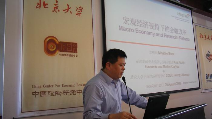2006年8月20日上午10点,北大中国经济研究中心金融硕士项目应社会各界人士的要求举行了第二次招生说明会。本次说明会由中心平新乔教授主持,同时也有幸邀请到了花旗集团中国区经济学家,中心沈明高教授担任本次说明会的嘉宾。