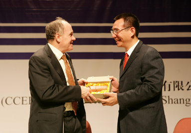 北京大学副校长张国有教授和香港上海汇丰银行(HSBC)中国业务总裁 Richard Yorke首先分别致欢迎词。北京大学中国经济研究中心与汇丰银行出于支持教育事业的共同目标,设立“北大汇丰经济论坛”,汇丰银行资助北京大学中国经济研究中心每年邀请一位诺贝尔经济学奖得主来北大作专题演讲,面向北大师生及社会有关人士和新闻媒体,旨在促进经济学国际交流和经济改革的发展。今年已经是论坛的第三期,第一期和第二期分别邀请了2001年诺贝尔经济学奖得主迈克尔•斯宾塞教授和1992年诺贝尔经济学奖得主加里•贝克尔教授。北京大学中国经济研究中心主任林毅夫教授随后介绍今天的演讲嘉宾。普雷斯科特教授1940年生于美国纽约州,1967年获卡内基-美隆大学经济学博士学位,现任美国亚利桑那州立大学经济系教授、并担任美国明尼阿波利斯联邦储备银行的研究员。普雷斯科特教授曾执教于明尼苏达大学、芝加哥大学、西北大学、卡内基•梅隆大学等多所美国著名学府,他还曾担任经济动态与控制协会主席、高级经济理论协会主席、Economic Theory主编、以及美国艺术与科学院院士与计量经济学会会员。普雷斯科特教授的研究领域为宏观经济学、一般均衡理论与应用、收入差别与计量经济学。他长期致力于商业周期分析。普雷斯科特教授近期的研究探讨经济发展的重要问题之一:为何有些国家经济成长,有些国家经济停滞?普雷斯科特教授利用数量方法分析与解释国际间每人所得不均问题。2004年,由于在经济政策的时效不一致性,以及商业周期驱动力的探讨方面做出的创造性研究,普雷斯科特教授被授予诺贝尔经济学奖(与挪威经济学家芬恩•基德兰德共同获得)。
