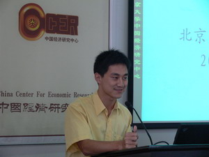 接着,07级博士研究生熊奕和07级硕士研究生乔攀分别代表今年入学的新生发言。熊奕同学回顾了自己在经济中心双学位和硕士阶段的学习历程,对这些年老师们孜孜不倦的教诲和来自同学们的砥砺互勉表达了自己的感激。他特别提到,林毅夫老师从现象入手的研究方法给了他莫大的启迪,而身处中心之内,既能及时地接触国内丰富的经济现象和研究素材,又能与老师和同学辩论研讨,受到了很深的教益。正是经济中心这样的独特魅力和学术氛围吸引着他,让他选择直博,在中心继续深造,继续享受徜徉经济学的快乐,他也希望自己能把这样的快乐传递给其他人。