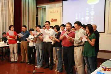 “真爱过才会懂,会寂寞会回首,终有梦终有你在心中。”在师生大合唱《朋友》的歌声中,晚会终于走向了尾声。中心的师生在演唱中倾注了感情,寄托着对学术同道的珍重,寄托着对中心未来的美好祝愿,更寄托着对理想的执着追寻。晚会在合唱余韵中圆满结束。师生们的欢声笑语由朗润园传遍燕园。