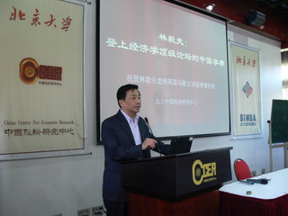 接下来,陈平教授也发表了一些看法。他谈到,林老师在马歇尔讲座上所取得的巨大成功,说明了三个问题。首先,在很长一段时间以来,西方的主流经济学理论太过于注重数学技巧的应用,而忽略了对现实世界的观察和了解,而林老师这次马歇尔讲座能获得成功,表明学术界正在开始反思,从复杂的、纯粹的数学拓展游戏像基于现象本身观察的,简单的,直观的,但却有力的理论回归。其次,林老师的理论在国际上得到的认可要比其在国内所受到的认可要高,这也说明不少国内学者的研究方向和学术标准存在问题。最后,他建议中心的学者之间应该有更多的交流和碰撞。