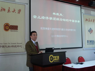 11月9日中午12:00,北京大学中国经济研究中心万众楼二层多功能厅上人潮涌动,气氛热烈。经济中心全体教师、员工和学生欢聚一堂,欢迎经济中心主任林毅夫教授在英国剑桥大学“马歇尔讲座”上载誉归来。