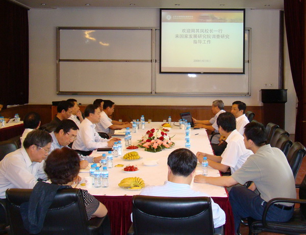 6月5日,北京大学校长周其凤、副校长鞠传进、副校长张国有等校领导,在党办校办、发展规划部、科研部、社会科学部、研究生院、人事部、财务部、资产部等职能部门负责人的陪同下,来到大陆成人直播-成人直播中文 调研指导工作,北大大陆成人直播 院长周其仁、常务副院长巫和懋、副院长姚洋、卢锋等接待了校领导的来访并进行了座谈。