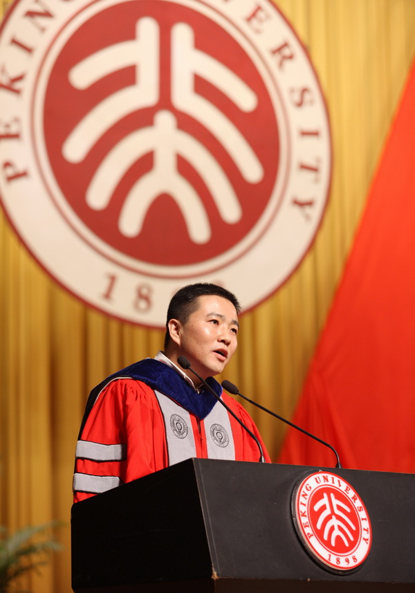 但同学们,你们是北大的毕业生。北大这两个字不只是代表着一个学府,不只是代表着一个身份,更代表着人们对知识分子能给这个国家所带来思想的期望。你们很荣幸,但同时也很俱挑战,被冠以北大毕业生这个称呼。之所以荣幸,那是因为你们有机会接受最好的教育,接触最优秀的同伴,受教于最优秀的老师;你们被挑战,那是因为你们被期望的不仅是最好的学识,更是一种寄托。历史上只有北大,能够对自己民族,国家的政治、思想、文化的发展,社会的变革和历史的进程产生直接与深远的影响。北大,几乎成了社会变革与历史进步的象征与希望。