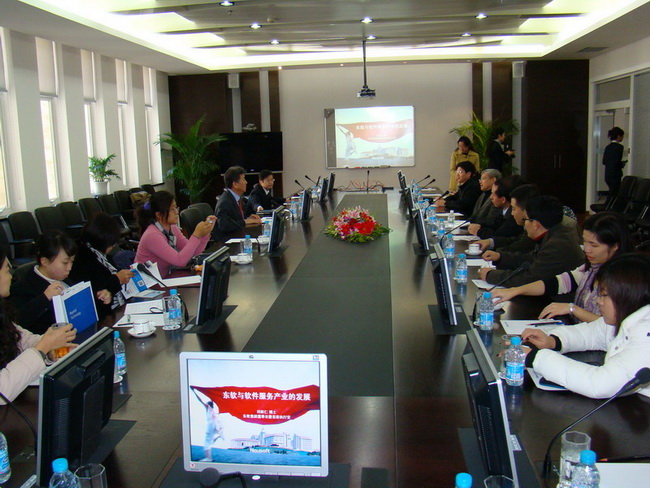 参观结束后,交流团来到会议室听刘积仁董事长做了题为“东软与软件服务产业的发展”的报告,就该集团18年的收获成长、人力资源发展体系、股权结构、客户分布及业务架构等进行了逐一介绍,他认为要创造企业可持续发展的能力,必须重视三方面的因素:准确的定位、开放的创新、与众不同的商业模式。刘积仁董事长的报告让交流团成员受益匪浅,大家纷纷就各自关心的一系列问题与刘积仁董事长进行了深入的交流。