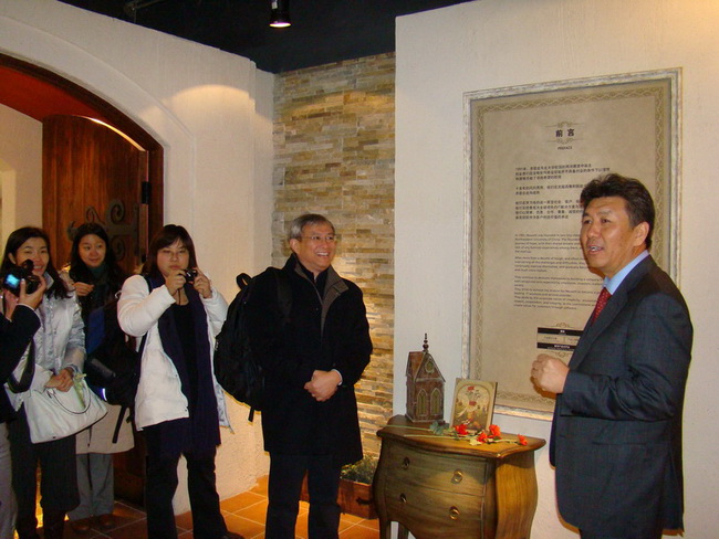 观看完这段有趣的视频后,李桂莲董事长向交流团介绍了大杨集团创业的历程。30年前,身为大队书记的李桂莲在自己的家乡——距大连经济开发区六十多公里外的杨树房镇,带领85名员工用几十台缝纫机开始了创业之路,那时他们只能生产袖套、椅垫等简单服饰品。李桂莲领着大杨集团进入高速发展期,是在他们1992年获得了进出口权之后。他们做起了国外服装厂商的贴牌生产工厂(OEM模式),给国外品牌加工服装。再后来,大杨集团有了一定的设计和生产能力,开始进入ODM时代,即变成原始设计商,根据其他厂商的规格和要求,设计和生产产品。直到近几年,大杨才开始强调自主品牌“创世”的打造。据她介绍,目前大杨集团总资产15亿元人民币,年服装综合生产加工能力1100万件/ 套,产品畅销英、美、德、意、日、韩等20多个国家和地区,年西服出口量500万件/套。