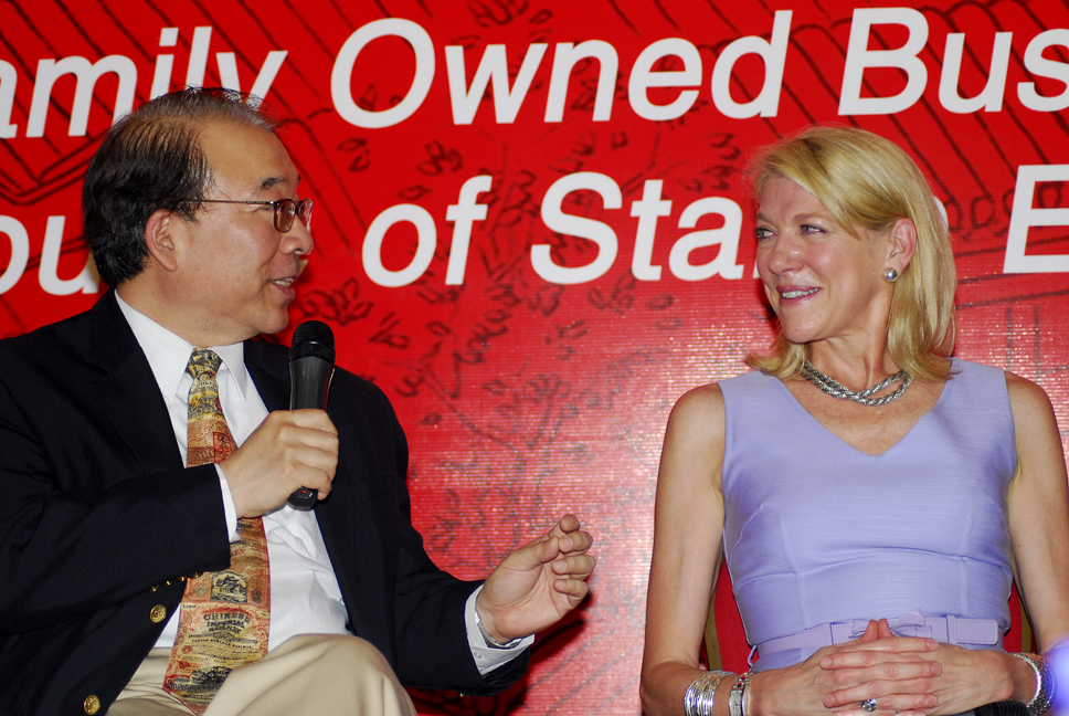 伊夫林•罗斯柴尔德爵士首先发言,为听众简单勾勒了罗斯柴尔德家族250多年的历史。18世纪末,该家族五兄弟分别在法兰克福、维也纳、那不勒斯、巴黎和伦敦建立金融网络,其中在伦敦立业的内森正是伊夫林先生的曾曾祖父。罗斯柴尔德家族支持过威灵顿公爵,甚至造就了巴西独立,在建立金融帝国的同时也不断扩大自身的政治影响力。爵士认为,对于建立家族事业而言,最大的挑战是第一代创造者如何把基业传给下一代。他强调说,父母是家族事业的关键因素,因为他们会为下一代设立行为准则和志向。爵士认为家族企业是一个社群,用情感建立人们之间的联系,要帮助身边的人,明白自己只是社团中的一员,而最重要的,还是一定要清楚自己想要什么。最后,爵士为大家分享了罗斯柴尔德家族格言:Concordia, Integritas, Industria(拉丁语:团结,正直,勤奋)。