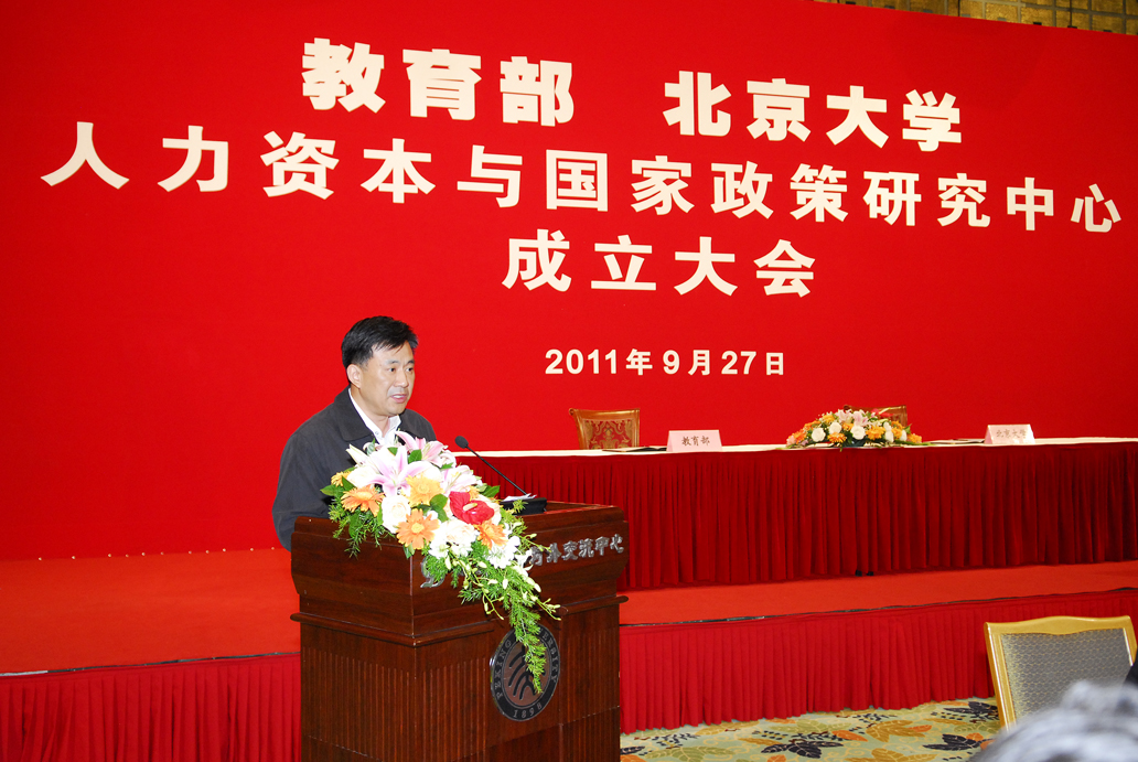 9月27日上午,教育部北京大学人力资本与国家政策研究中心在英杰交流中心宣布成立,教育部副部长鲁昕、北京大学校长周其凤分别代表教育部和北京大学签署了研究中心共建协议,副部长鲁昕与北京大学党委书记朱善璐共同为中心揭牌。成立仪式由教育部发展规划司司长谢焕忠主持。