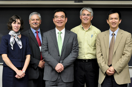 Photo above: Justin Lin, at center, posed for a photograph after his public lecture Oct. 14. With him are, from left: Laurie Dennis, Wisconsin China Initiative; Gilles Bousquet, Vice Provost and Dean of International Studies; Ian Coxhead, professor of Agricultural and Applied Economics; and Yang Yao, visiting professor from Peking University.