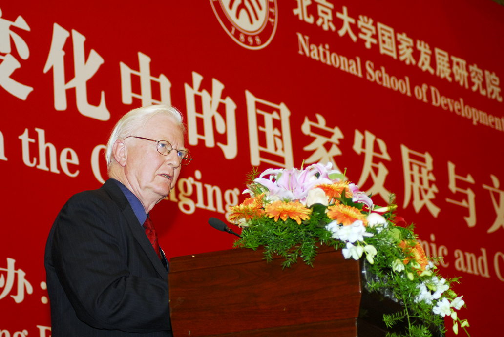 一位是世界银行高级副行长兼首席经济学家林毅夫教授,他的一言一行都会受到媒体的极大关注;一位是2007年诺贝尔经济学奖得主罗杰•梅尔森(Roger Myerson)教授,他谦虚热情,甚至因为不忍心打断记者的连连发问而最后离开会场;一位是1996年诺贝尔经济学奖得主詹姆斯•莫里斯(James Mirrlees),他在博弈论和信息经济学方面做出了突出贡献,目前已经来到中国授课。这几位学者聚在一起,会产生什么样的思维碰撞呢?2011年11月4日下午,北京论坛(2011)“世界格局变化中的国家发展与文化复兴”专场对话在北京大学英杰交流中心阳光大厅举行,对话嘉宾正是这三位学者。