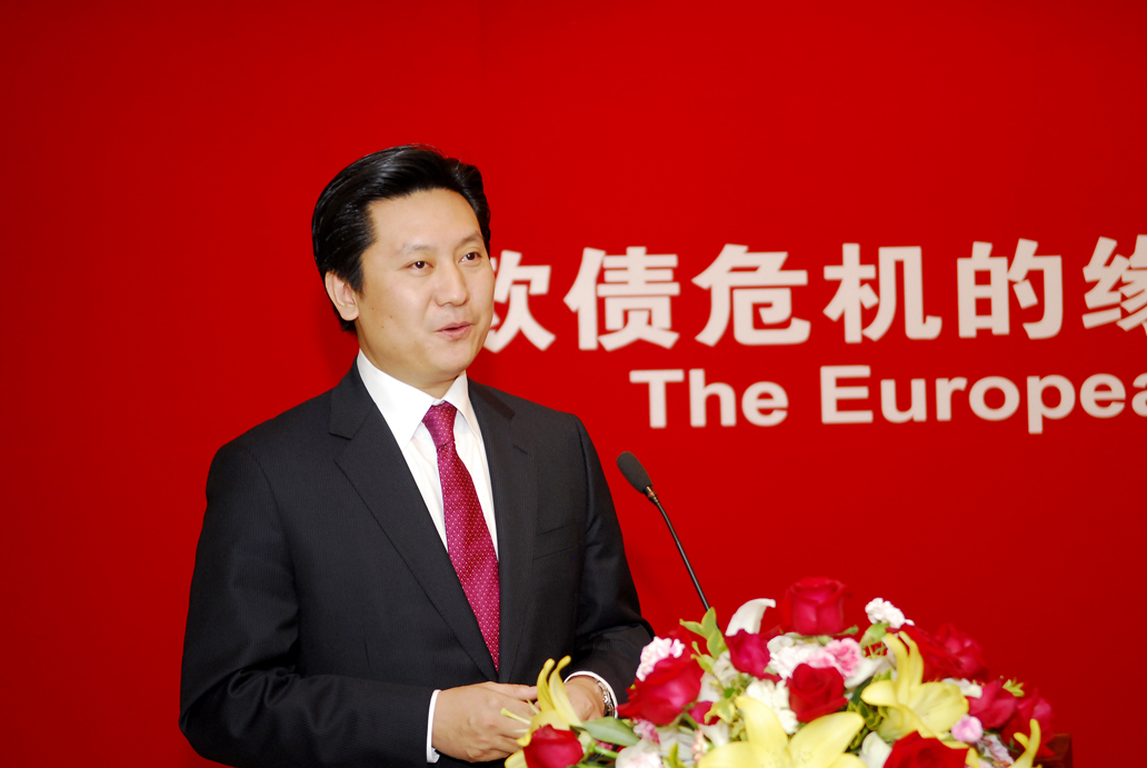 接着,中国国际友人研究会会长马灿荣先生致辞。他表示,欧洲债务危机是国际政治经济的重大事件,而中国是欧盟的密切合作伙伴,对欧债问题予以高度的关注。今天的会议将带给我们一个深入研究和探讨的机会。