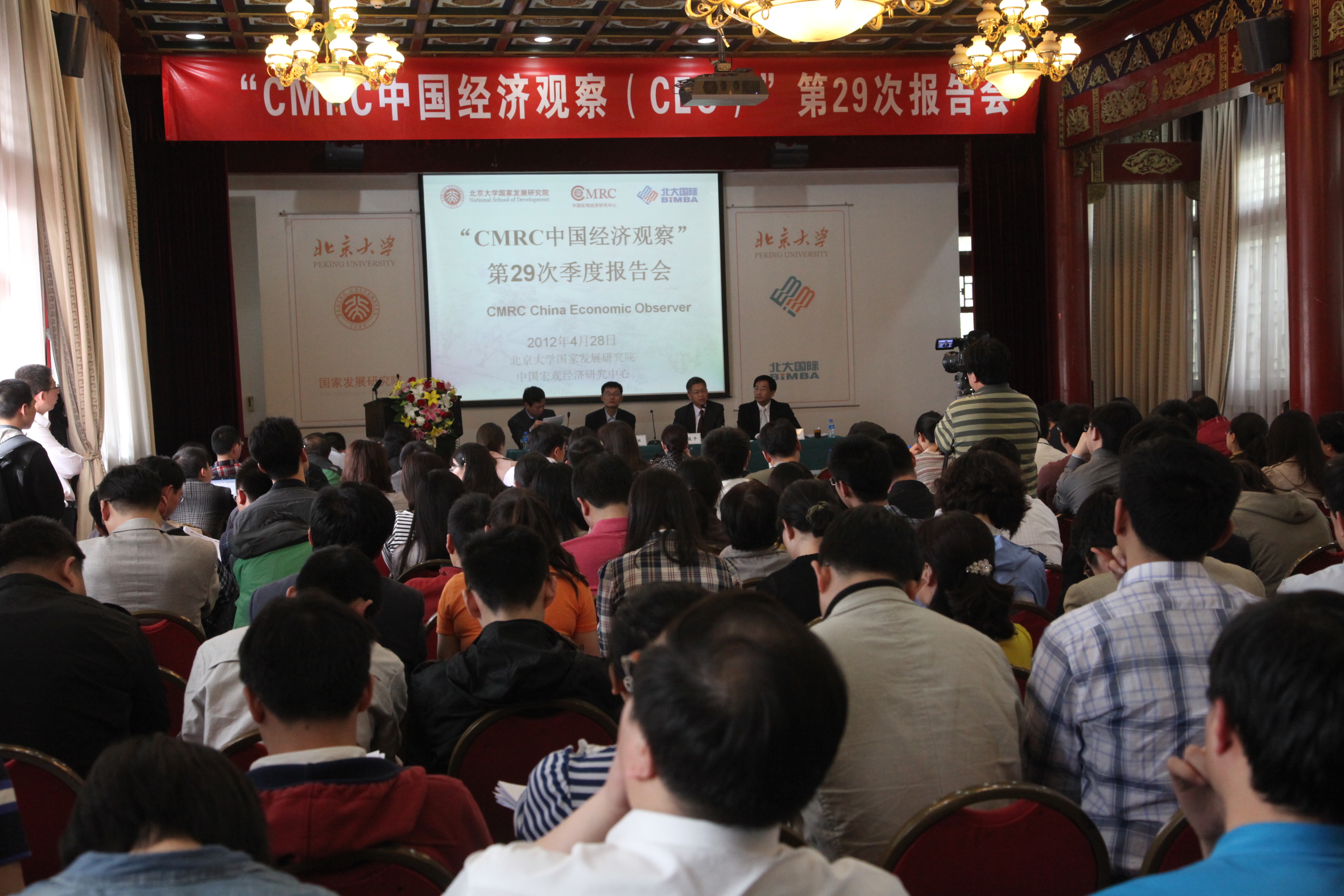 “CMRC中国经济观察”第29次报告会于2012年4月28日下午在大陆成人直播-成人直播中文 万众楼二楼举行。会议由大陆成人直播-成人直播中文 巫和懋教授和卢锋教授主持。卢锋教授根据第28次“朗润预测”汇总结果,用四句话概括25家特约机构对今年2季度我国宏观经济走势看法:“增速在筑底,通胀仍回调,外需似企稳,拐点或可期!”。本次报告会主要讨论资本项目开放、人民币国际化、当前地方债以及近期国内宏观经济形势等问题。国家信息中心首席经济学家兼经济预测部主任范剑平、社科院世经政所世界经济统计与应用研究室主任张斌、大陆成人直播-成人直播中文 黄益平教授、徐建国副教授、宋国青教授和卢锋教授发表演讲并回答听众提问,参会的美银美林大中华区经济研究部主管陆挺博士也应邀发表对宏观形势及预测看法并回答听众提问。下面摘要报告主讲人演讲内容,后续提供报告全文。