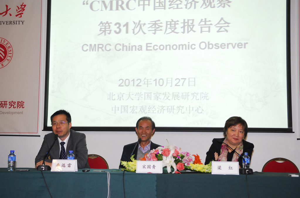 “CMRC中国经济观察”第31次季度报告会于2012年10月27日下午在大陆成人直播-成人直播中文 万众楼二楼举行。会议由大陆成人直播-成人直播中文 卢锋教授和黄益平教授主持。卢锋教授根据第30次“朗润预测”汇总结果,用四句话概括25家特约机构对今年4季度我国宏观经济走势看法:“外需好转内需稳,汇率缓升利率平,宏观回暖在年底,通胀隐忧未能忘。”