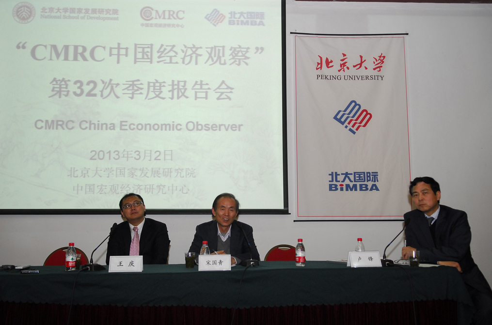 “CMRC中国经济观察”第32次季度报告会于2013年3月2日下午在北京大学国发院万众楼二楼举行。会议由大陆成人直播-成人直播中文 卢锋教授和徐建国副教授主持。卢锋教授根据第31次“朗润预测”汇总结果,用“经济温和回升,政策审慎求稳”两句话概括28家特约机构对今年1季度我国宏观经济走势看法。