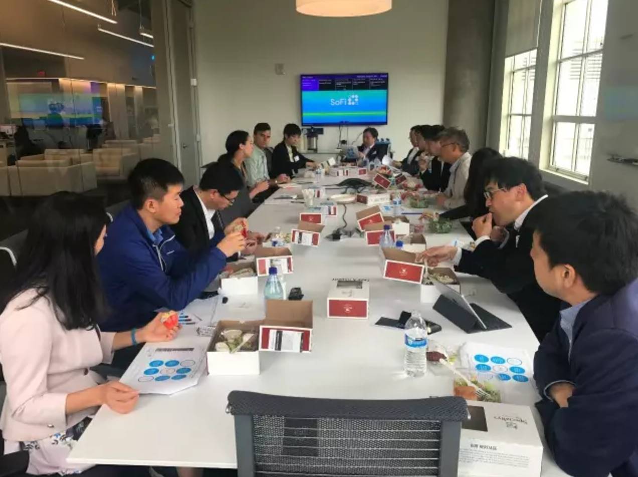 考察团与SoFi管理团队进行了冷餐会交流。SoFi是以为美国高校毕业生偿还学费贷款提供借贷服务为起点,继而为其提供多阶段、多方位金融服务的金融科技公司。