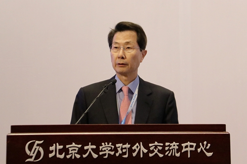 朴仁国先生首先对本届北京论坛的成功举行表示祝贺,对为北京论坛作出重要贡献的组织者和志愿者表示感谢。他表示,在过去的三天时间中,各论坛以“文明的和谐与共同繁荣——互信、合作、共享”为主题,开展了多样对话,讨论了气候变化、经济格局的改变、教育的发展等问题。国际社会正面临越来越多的挑战,要想解决国际问题,就必须有更多的合作。我们应该顺应变化,发挥自身创造性,努力找到创新的平台。他指出,明年中国将召开中国共产党第十九次全国代表大会,韩国也将进行总统大选,东亚地区即将迎来新的领导换届。为了实现东亚地区和平、稳定和共同繁荣,北京论坛的民间交流角色就显得尤其重要,他希望今后中国继续起到引领作用,为世界的发展与和平贡献新的力量。最后,朴仁国以名句“路漫漫其修远兮,吾将上下而求索”来结束自己的致辞。