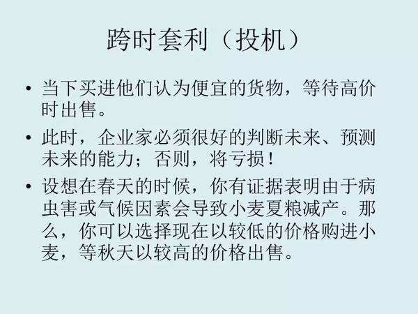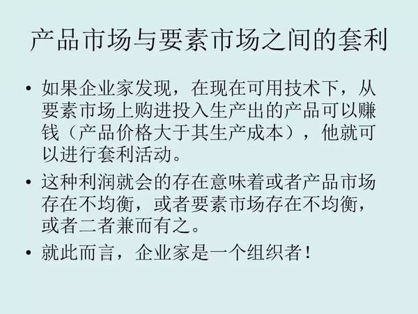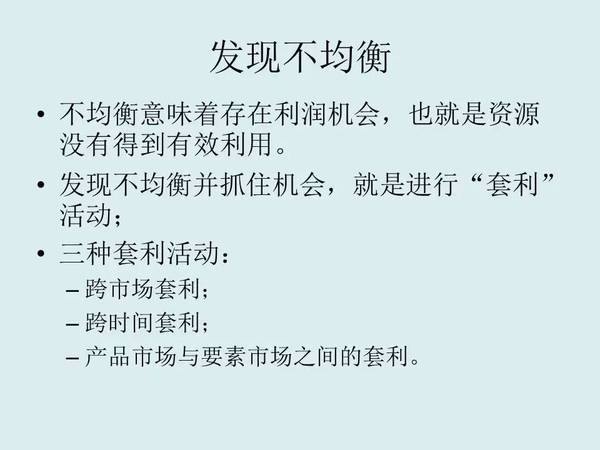 你有本事有商业嗅觉就可以发现这种不平衡,抓住机会,就可以挣钱,这就是套利。套利分三种:跨市场套利、跨时间套利和产品市场与要素市场之间的套利。