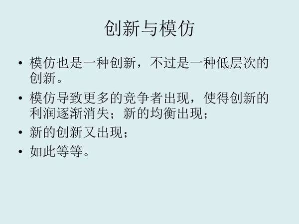 创新是什么?打破旧的均衡,建立新的均衡。传统电脑饱和了,苹果公司生产IPAD打破传统电脑赚钱了。同样,传统汽车饱和了,出现新能源汽车、无人驾驶汽车、智能汽车等等,这些创新就是打破原来格局。