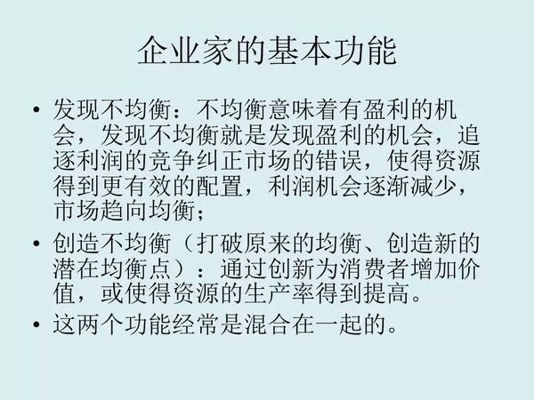 人类由于无知犯错导致资源配置不合理,导致浪费。本来能卖高价却卖了低价,有些低价能买到却出了高价,经济学家叫不均衡。企业家的基本功能,一是发现不均衡,二是创造不均衡。这两个功能经常混合在一起。
