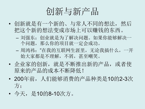 一个创新能不能成功,要看对人性的理解。人性有弱点,千万不要利用人性的弱点赚钱。明明知道买了以后会后悔,还要卖给他,这就是利用人性的弱点赚钱。很多人一说创新,就做市场调研消费者需要什么,其实大部分消费者不知道自己需要什么,要企业去想象。
