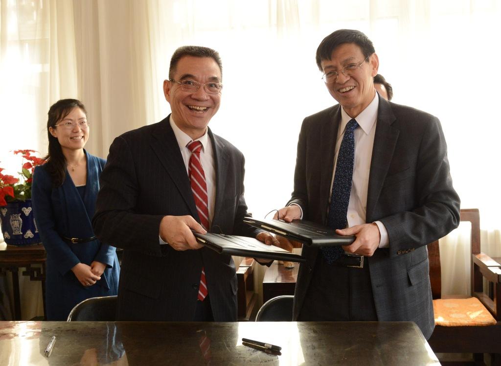 3月21日早9时,在北京大学朗润园致福轩,新结构经济学研究中心主任林毅夫、执行副主任徐佳君会见了到访的国际食物政策研究所(IFPRI)所长Shenggen Fan(樊胜根)博士等一行四人。双方签订了合作谅解备忘录,还就双方具体的合作机会交流了资源、交换了意见。这是继2月23日与联合国南南合作办公室签订合作备忘录以来,新结构经济学中心与又一重要国际组织建立合作机制。