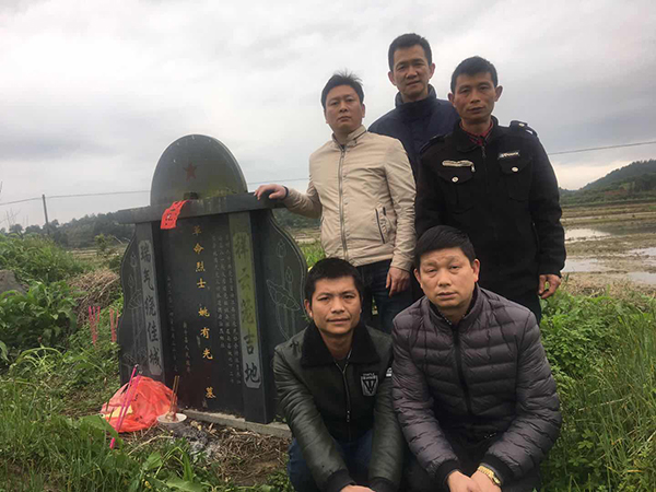 姚洋与伯母及其他亲属在姚有光烈士故居前。