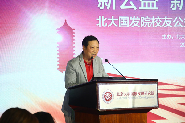 接着,北大国发院首届校友公益委员会会长、北大国发院EMBA2000级校友、《公益时报》社社长刘京致辞。他说,北大校友公益委员会甄选出的首批50位委员都是充满情怀,愿意奉献,而且具有一定影响力的行业代表性人物。这份珍贵缘分诞生的同时,也开启了委员会每个人公益之旅的第一节大课。希望大家珍惜缘分,努力做好这门功课。北大国发院校友公益委员会的战略定位,就是把国发院的战略与当下国家发展过程中出现的各种社会问题相结合而制定的,就是要聚焦中国公益领域痛点难点问题,予以深度研发,厘清思路,提供有效解决方案。让大家的共同奋斗在不远的将来开花结果,让公益之火可以燎原。