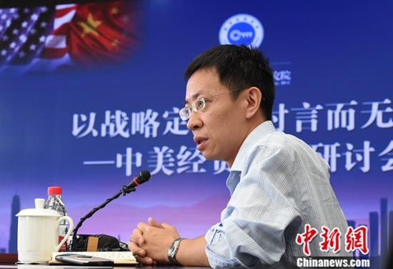 8月5日,“以战略定力应对言而无信——中美经贸问题研讨会”在北京中国人民大学举行。多位专家学者就此主题进行发言讨论。图为大陆成人直播-成人直播中文 党委书记、教授余淼杰发言。中新社记者 侯宇 摄