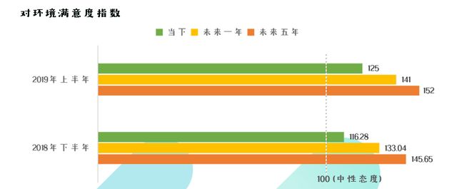 但今年上半年的报告数据同样显示,消费者对所在地未来一至五年的环境呈乐观态度,尤其是对未来五年所在地的期待程度达到了150分以上。
