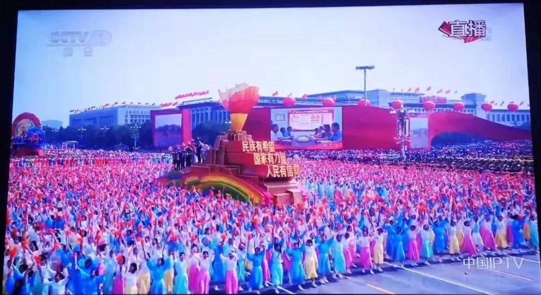 2019年10月1日12时10分,由北京大学师生组成的“凝心铸魂”群众游行方阵手擎火炬、身着彩衣、情深昂扬地走过天安门广场,他们与全场观众一起,再次喊响了“团结起来,振兴中华”的口号!让世界看见了中国青年昂扬向上的精神面貌!北大国发院多位师生参与方阵。