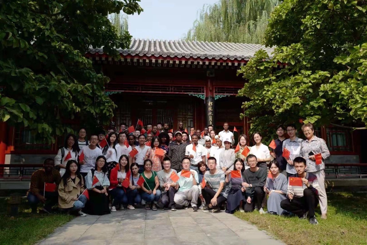 北大南南合作与发展学院多位师生也参与到隆重的国庆活动中,以“人类命运共同体”的方阵走过天安门。