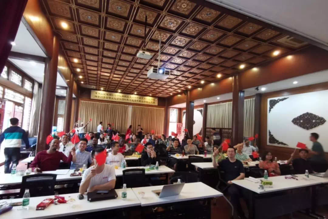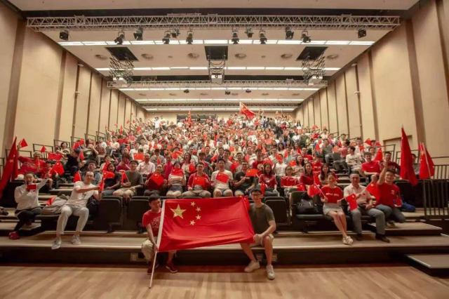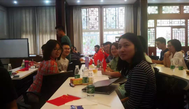 学院贴心地为大家准备了零食和小国旗北京时间上午十时,国庆典礼正式开始。在场师生全体起立,行注目礼。当直播里的国旗冉冉升起的时候,大家一起高唱着义勇军进行曲。随后,大家坐下来聆听直播中习近平主席发表重要讲话。