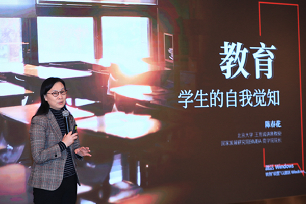 活动伊始,陈春花教授首先发表了题为“教育,学生的自我觉知”的主题演讲。在演讲中,陈老师坦言发起“职业导师”项目的初衷源自自己在长期教育实践中的感受:老师与学生之间存在一种可称之为“生命相伴”的关系,有老师作为对话对象,学生可以更好地应对来自外界的挑战。