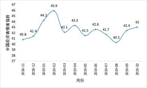 2019年10月中国投资者情绪指数(CISI)录得43。这一数值较上月小幅上升(1.4%),延续上月反弹,投资者情绪有所改善。