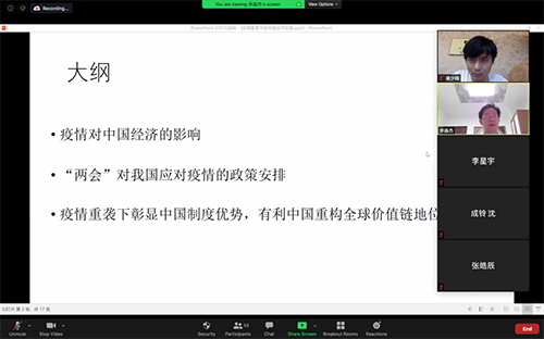 余淼杰教授围绕疫情重袭下的中国经济发展,结合刚结束的“两会”对我国应对疫情的政策安排,分析疫情对中国经济的影响,并指出疫情重袭下中国经济逆势向上是对“四个自信”最有力的事实支撑,彰显中国制度优势,有利中国重构全球价值链地位。