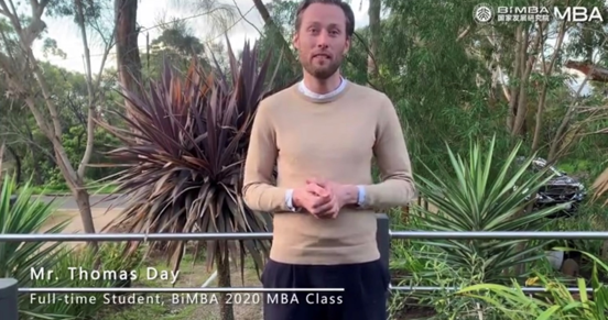 PKU-UCL MBA全日制项目新生代表Thomas Day来自澳大利亚,曾任墨尔本大学Asialink Business中国部企业解决方案经理。他说,在今年如此动荡的环境中,我们能够获得来BiMBA学习的机会是非常幸运的。我们应充分利用这段时间提升自己的各方面知识和技能,使自己能够更好地应对充满复杂性、多变性和不确定性的未来。全球有上千家商学院,但PKU-UCL MBA项目拥有东西方两个最重要首都城市的政治经济优势,以及两所顶尖大学的师资优势,必将给同学们提供最独特而全面的视野和高度。Thomas最后引用孔子的“学而时习之,不亦说乎?有朋自远方来,不亦乐乎?”表达了他对BiMBA学习的期待和信心。