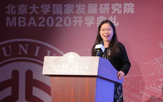 北大国发院助理院长、BiMBA商学院常务副院长范保群老师首先致辞,他介绍了国发院的历史渊源与顶尖的教授力量,以及作为国家高端智库多年来为政府建言献策,为中国社会做出的突出贡献。国发院“居庙堂之高”,长期关注国家发展、改革开放领域的重大问题,形成了一批有影响力的政策建议;同时,国发院也“处江湖之远”,围绕经济热点、焦点、难点问题,以科学和真实的学术态度揭示真相和趋势,形成舆论引导。他强调,北大国发院BiMBA商学院是全国唯一一所国家高端智库中的商学院,希望同学们珍惜在这里难得的机遇和时光,秉承专业和坚持的品质,用行动证明自己的选择,走出人生新的格局,创造与众不同的人生。杜桂英老师:任何值得做的事都值得把它做好