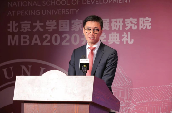 PKU-UCL 在职班新生代表刘涛在亚马逊中国担任公共政策及政府事务总监,他表示,今年的疫情与以往的危机都不同,深刻影响着每个人工作和生活的方方面面。在VUCA时代,我们还需要关注和了解国内外的政治经济环境变化,BiMBA是智库中的商学院,能够帮助我们提升视野,获得对时势变化更精准的理解。他回顾了自己两年前在华为接待由国发院院长姚洋教授带队的BiMBA参访团的经历,他坚信,来BiMBA读书必将精进自己的商业管理技能和对政策走向的认知。