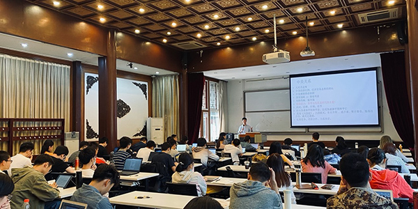 最后,余淼杰教授做了总结:疫情重袭下,中国经济已在回暖,成为全球大国表现最好的国家。全球化结构与形态发生了变化,但基本方向与趋势没有改变。如优先发展数字导向、知识密集的全球价值链,中国中心节点位置可获巩固。应对中美关系,我们应该保持战略定力,做好战略研判,中国仍处于战略机遇期,当前用“双循环”开好中国新发展格局,中华民族的伟大复兴必将指日可待。最后,余老师将“没有最终的成功,也没有致命的失败,最可贵的是继续前进的勇气”这一句话送给在座的所有本研新生,鼓励大家无论遇到成功还是失败都要不懈努力,坚持前进。为推进中华民族的伟大复兴、构建人类命运共同体而读书!