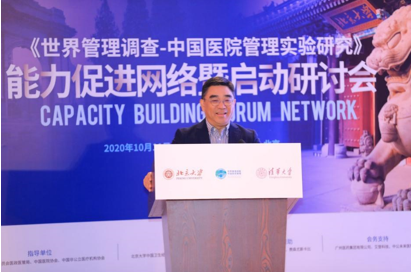2020年10月11日,北京大学中国卫生经济研究中心、清华大学医院管理研究院联合举办了《世界管理调查-中国医院管理实验研究》能力促进研讨网络暨启动研讨会。本次研讨会采取线上、线下同步举行方式,全国各地上千家医院院长、副院长等高层管理人员通过在线参与了论坛。